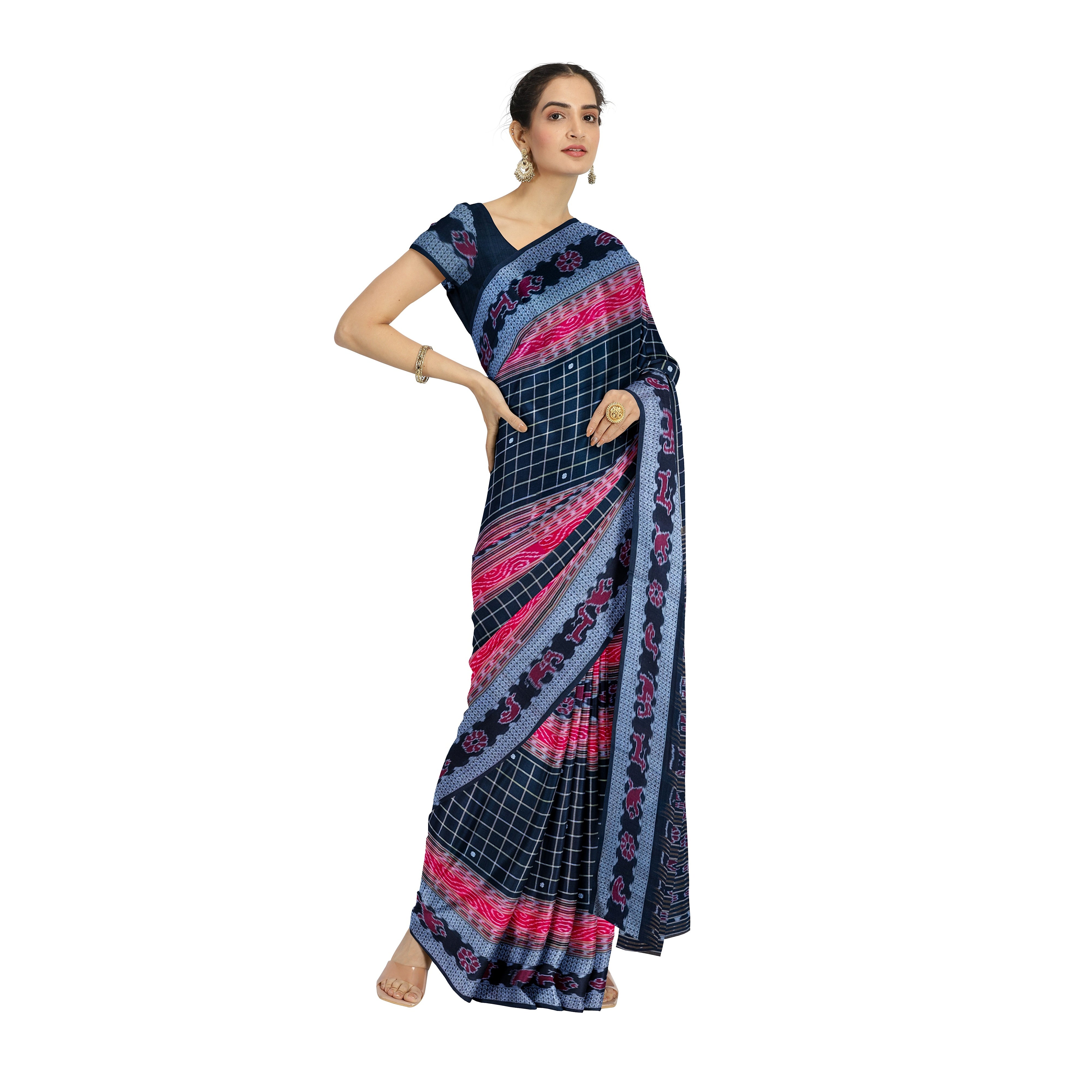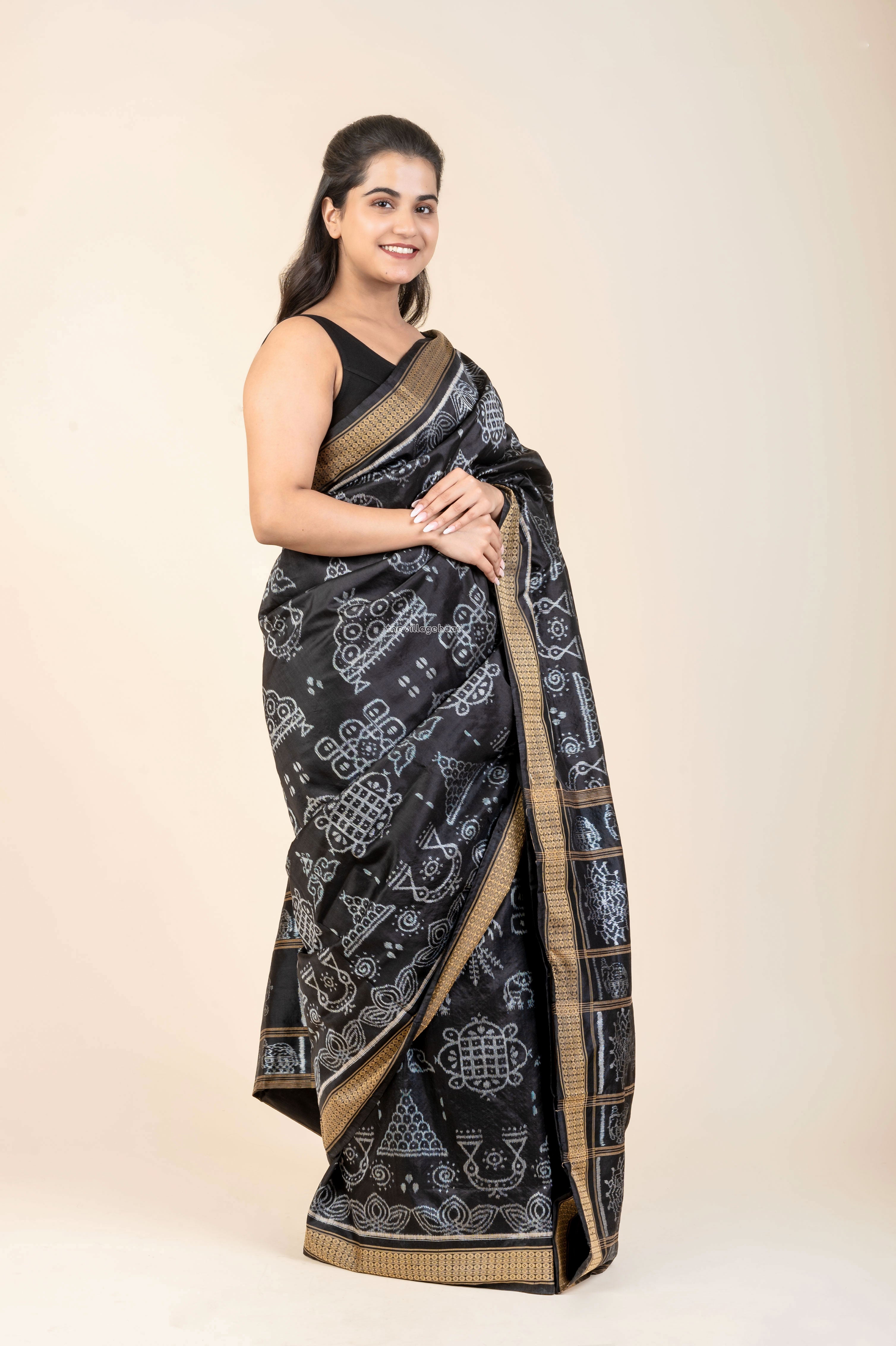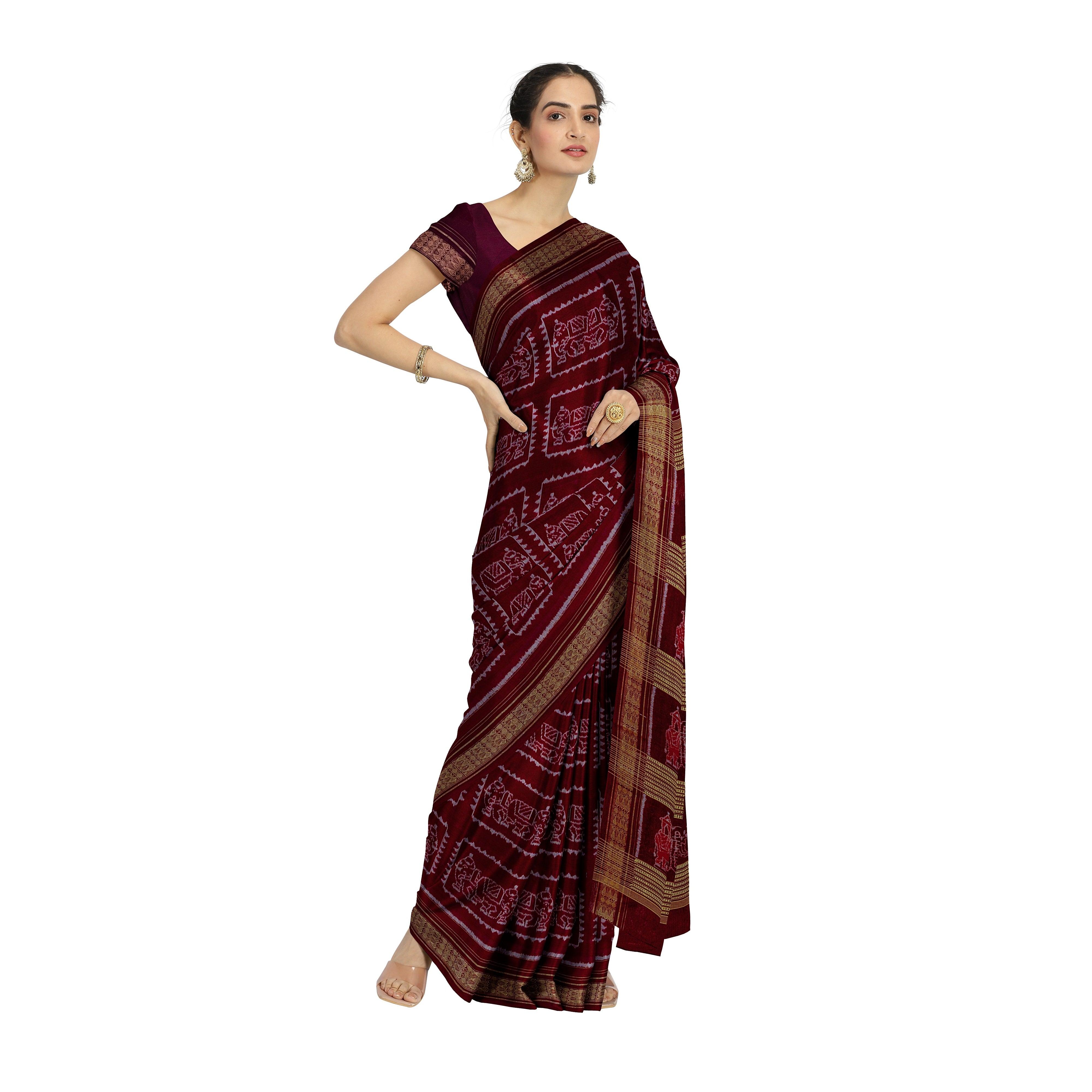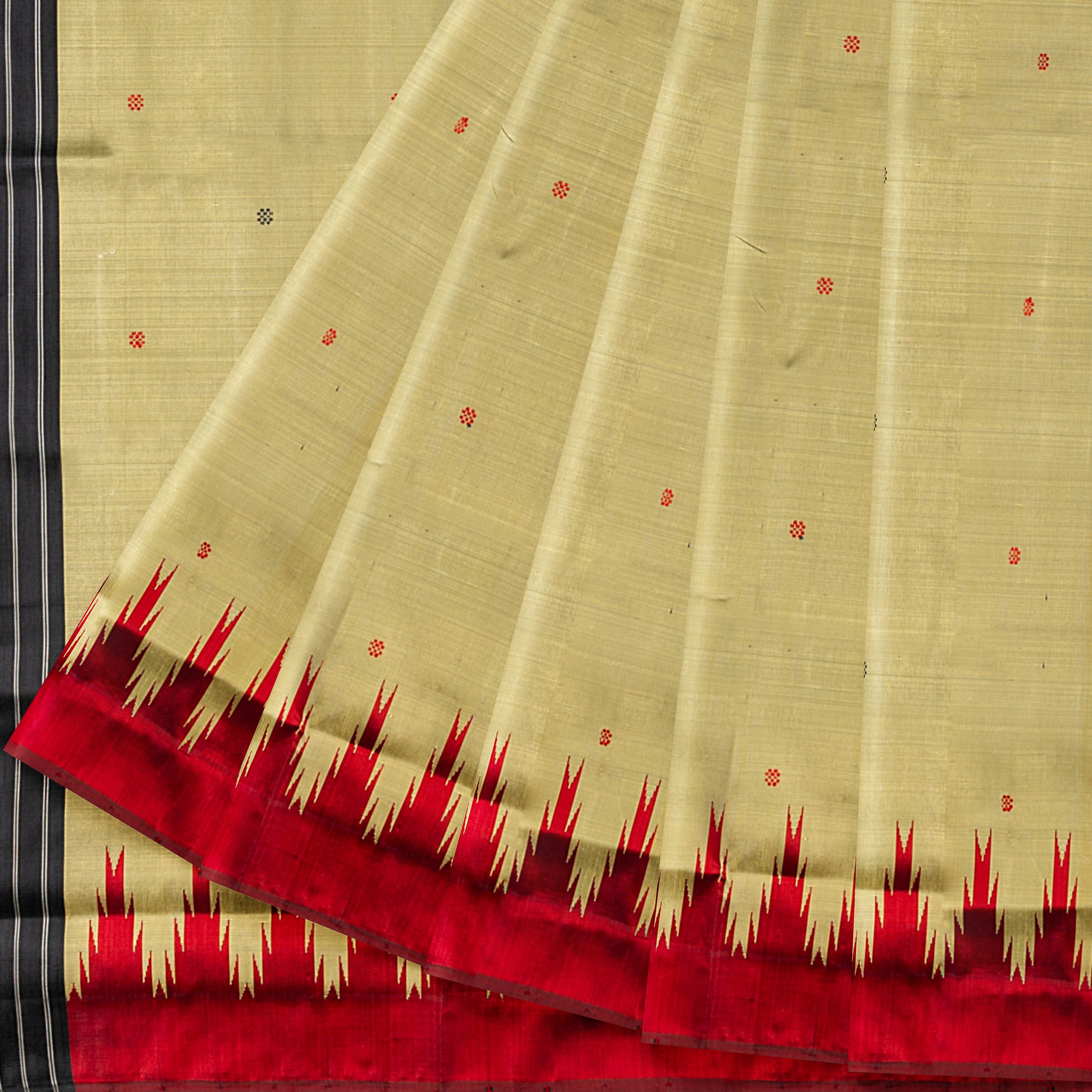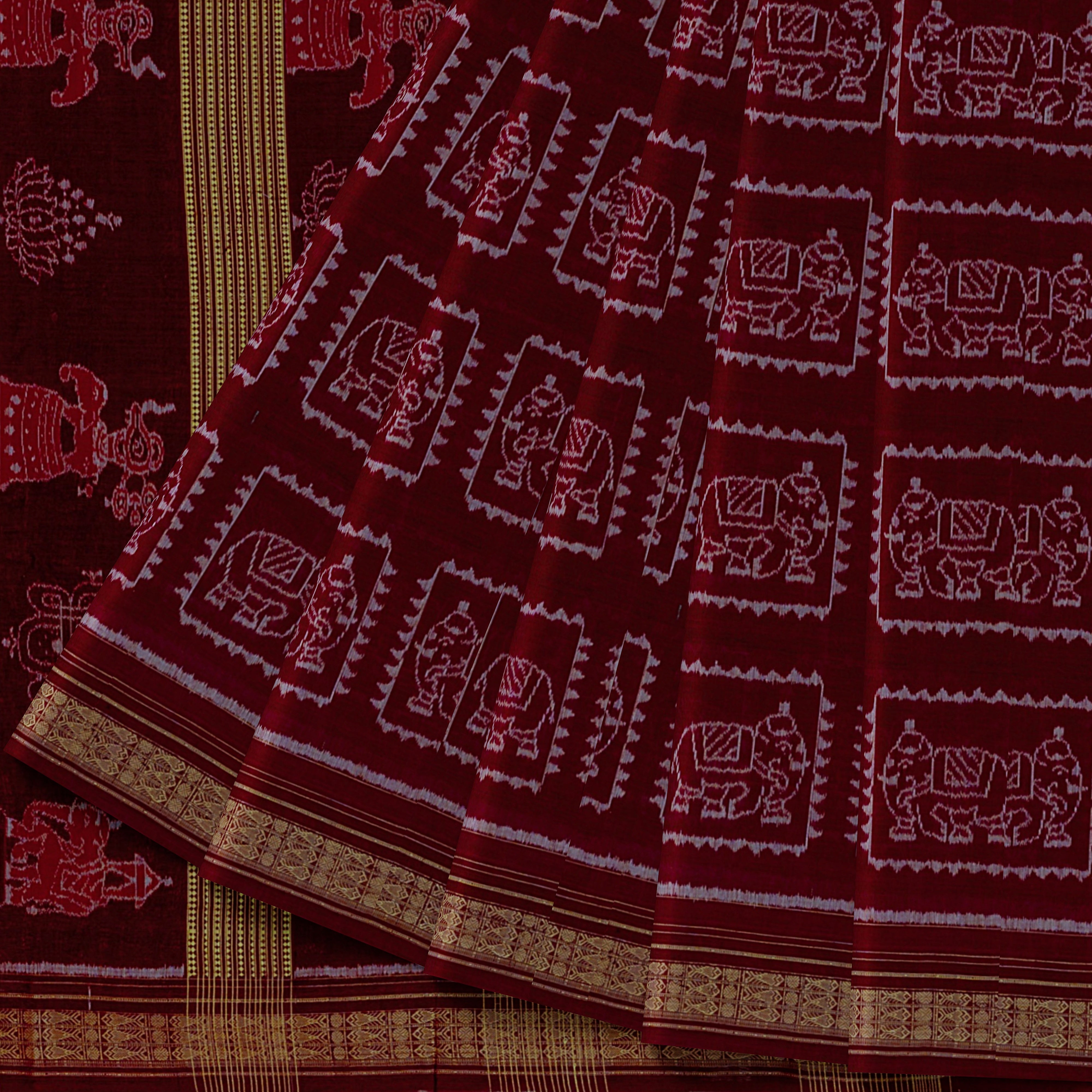Discover the charm of this Bapta saree, crafted from a comfortable and elegant raw silk and cotton mix. The saree showcases a vibrant red buta design that dances across the fabric, while the pallu and body are further enhanced by classic Sambalpuri traditional motifs. This ensemble is finished with a simple yet sophisticated plain red blouse piece.
